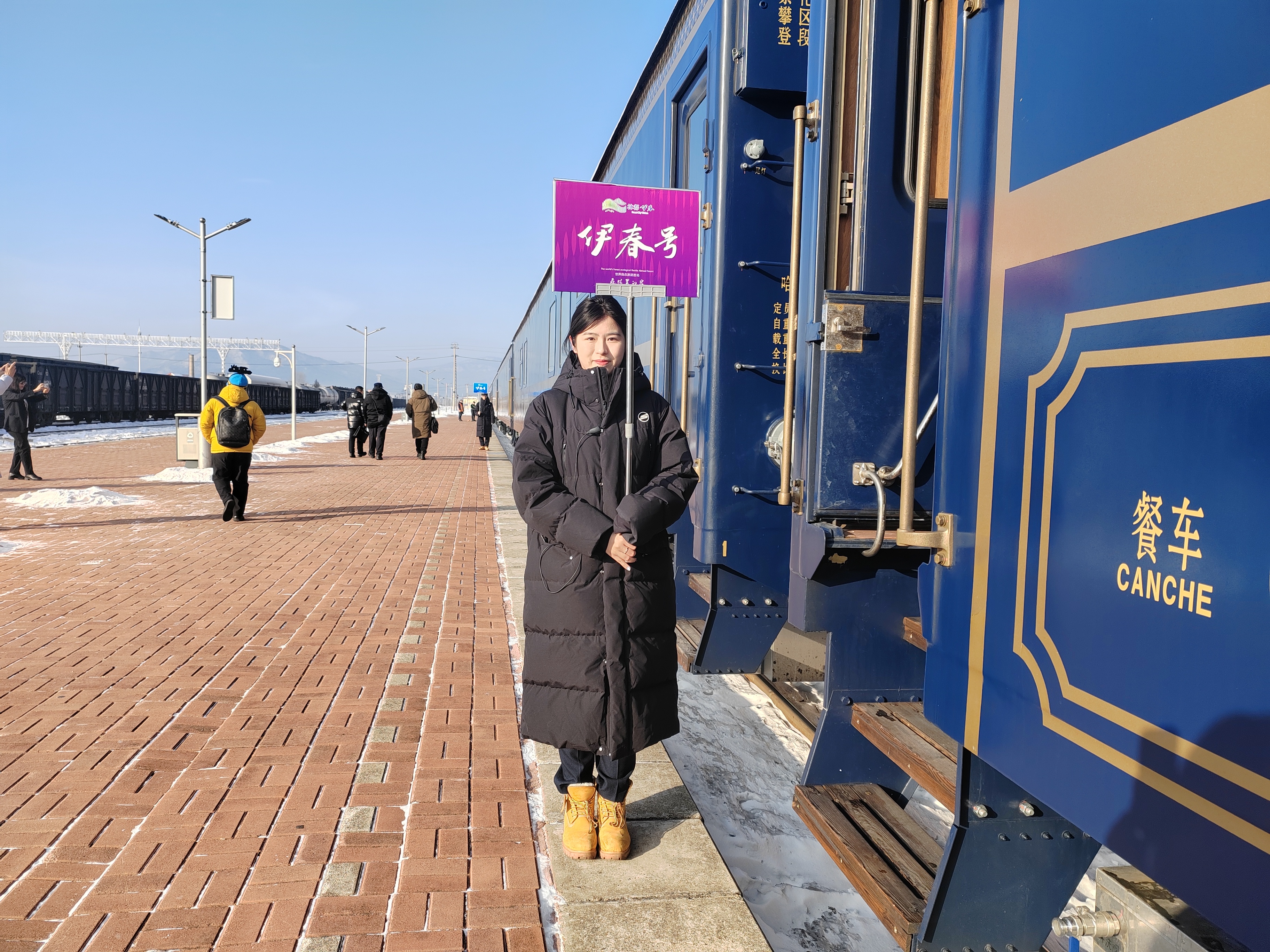 被网友称为“火车界天花板”的“伊春号”有什么特色呢?列车按照五大洲的文化特色和建筑风格,精心设计了5节休闲观光娱乐车,分别是“行走的敖麓古雅”“红堡之夜”“金海岸漫步”“撒哈拉故事”“浪漫的温哥华”。列车上不仅有会议室,茶艺室,旅拍尾车,还能欣赏古筝、吉他、架子鼓乐队表演。在穿越小兴安岭的旅途中,“伊春号”就像一个移动的温馨家园。游客们在车厢里品尝着当地的美食,欣赏着窗外不断变换的风景,感受着冰雪森林的独特魅力。列车工作人员热情周到的服务,让游客们感受到了家的温暖。